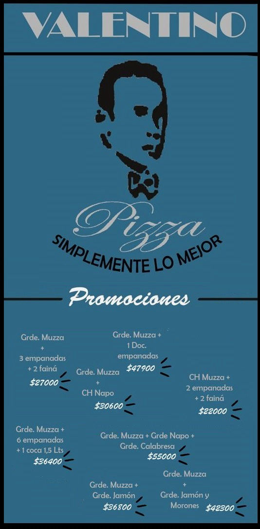 Dirección Chivilcoy 999 CABA Contactoinfo@valentinopizza.com.arTel: 011 4672-4904Tel: 011 4674-3025